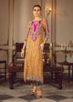 The ensemble is completed with a stunning gold mesuri dupatta, featuring an elegant, intricate pattern that perfectly complements the rich brownish palette of the shirt. This thoughtful combination of colors and textures makes this outfit a striking choice for any special occasion, ensuring you stand out with sophistication and grace.