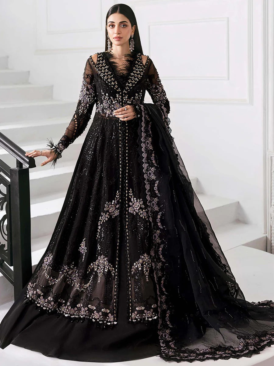 Embroidered Organza Sleeves Right With 3D Flowers & Luxury Hand Embellishment