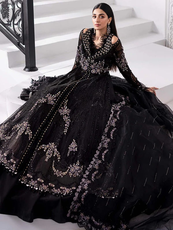 Embroidered Organza Sleeves Left With 3D Flowers & Luxury Hand Embellishment
